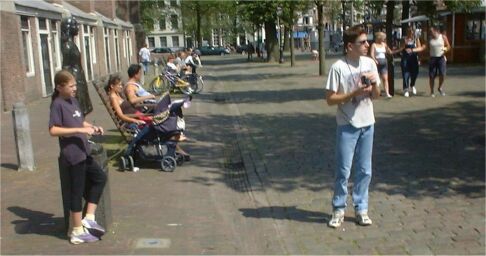 Bij b) de toehoorder.De verteller maakt de toehoorder tot tijdgenoot van het verhaal. De luisteraar wordt meegenomen het verhaal in, krijgt de rollen van deze geschiedenis te spelen. Sympathie en antipathie, maar ook nieuwsgierigheid of het gevoel ‘dit is iets heel anders’ bepaalt hoe je instapt. In het verhaal kom je hetzelfde anders tegen. Onverwachte accenten, woorden, blijken mogelijkheden of vergrotingen. Zo verken je mogelijkheden voor het eigen, achteraf gezien steeds nauwelijks nog gekende, ik. Anderen vergaat het ook zo. Voor de toehoorder is het verhaal een uitstapje, een rondreis door of langs [11] waar je (nog) geen verhaal voor hebt, waar je geen deel van uitmaakt, waar woorden nog voor jou aan het licht moeten komen, waar je eerst proeven of proberen moet. |