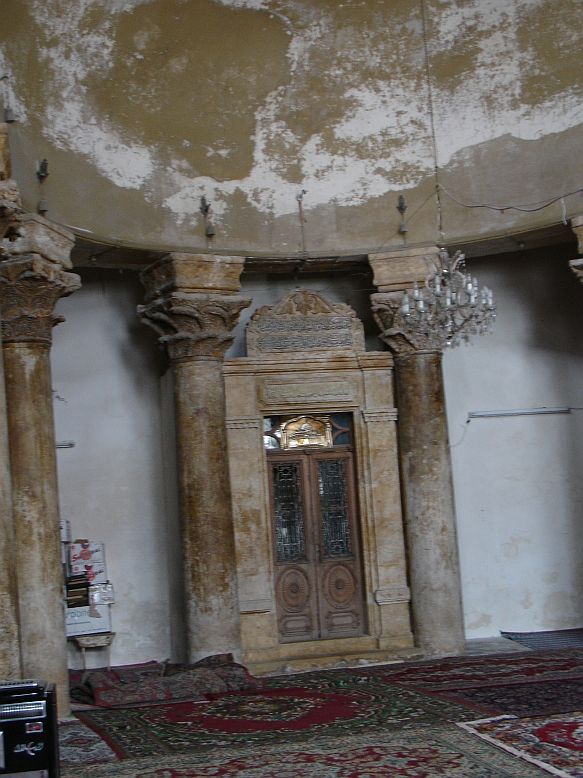 Dus nu er op af. Waar gaan we naar toe? Zeer zichtbaar oud, met een kabeltje eroverheen. Een kruisteken op een van de zuilen