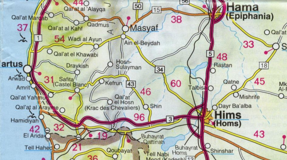 via Hama naar Homs en daar richting Middellandse zee. Een