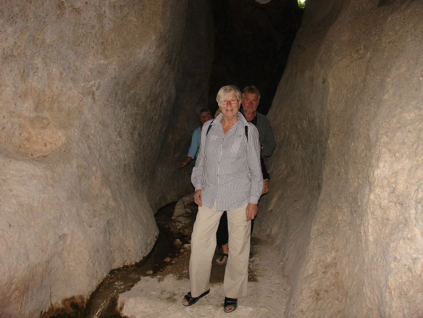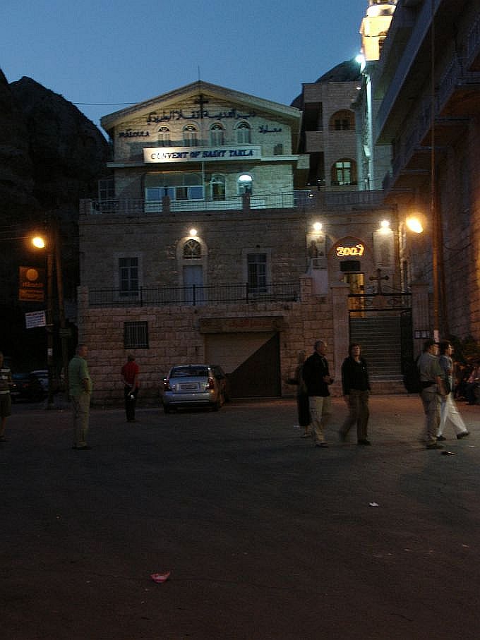legionair die het weigerde aan Juppiter te offeren en daarom werd omgebracht. Daar, verscholen in de bergen, is een kerk. Het is de plaats van het graf van de Heilige Tecla. Volgens de traditie is zij een van de leerlingen van Paulus. De vormen zullen straks, beneden, enigermate herkenbaar zijn. Er